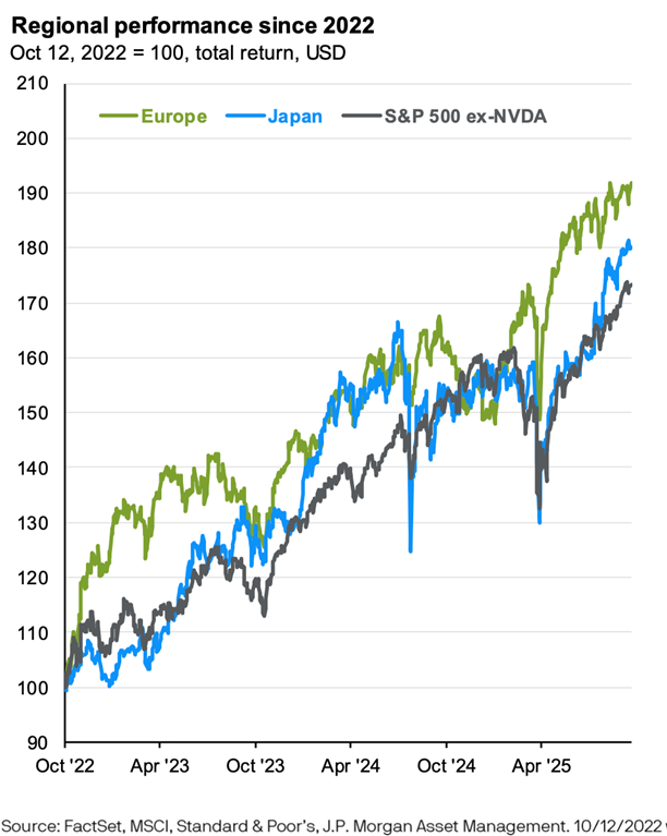 There are also significant pockets of innovation in Europe. ASML Holding, a Dutch company that makes semiconductor manufacturing equipment essential for building the most advanced chips, is now the largest company in the developed markets index (but still less than 10% the size of Nvidia, whose AI chips could not be made without ASML's technology).  Danish company Novo Nordisk is one of the innovators and beneficiaries of the GLP-1 class of weight loss drugs.