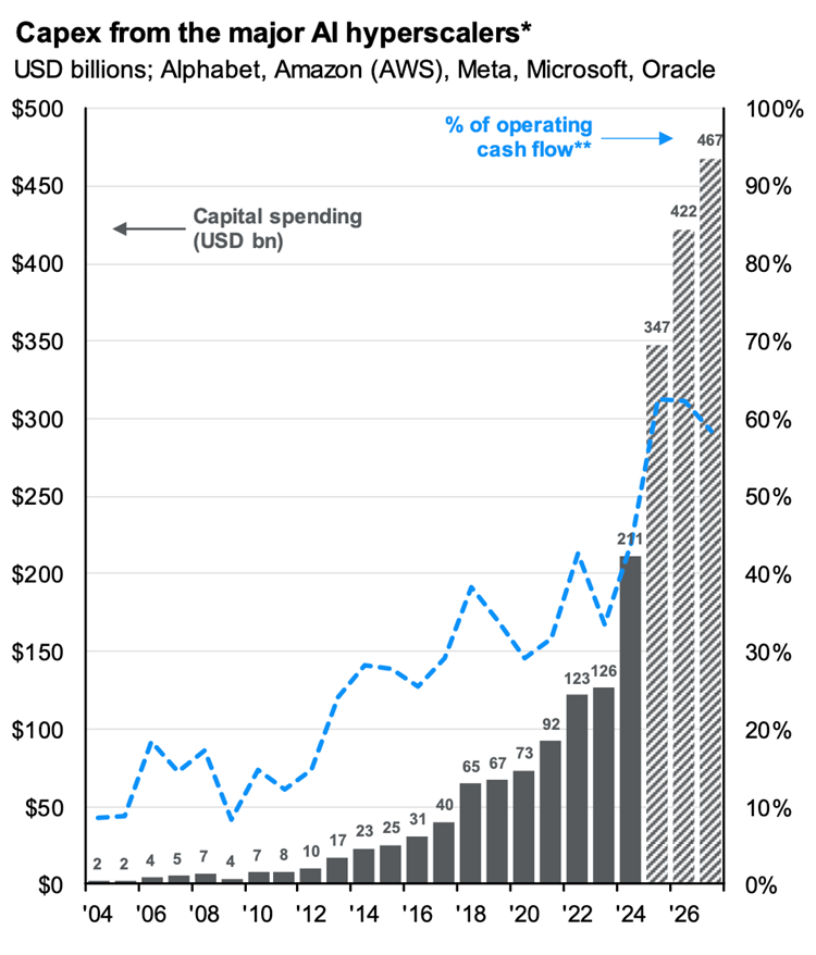 We will attempt to offer a little perspective below on whether this AI investment boom is going too far, too fast.